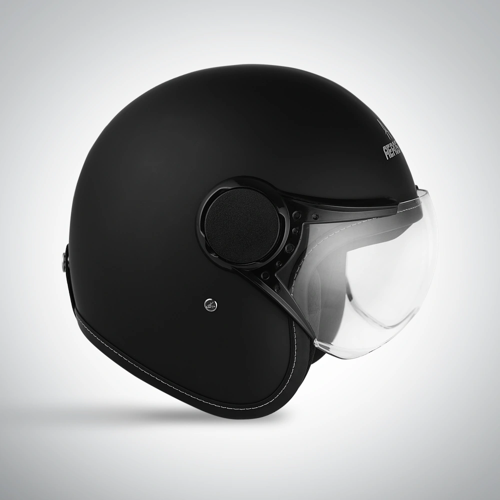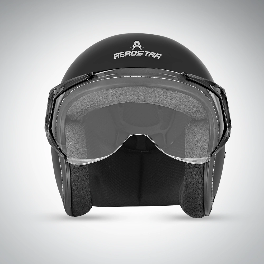 Its open-face (jet) design ensures better airflow and convenience, making it ideal for short commutes and frequent stops. Inside, the helmet features soft, cushioned padding that provides a comfortable and secure fit throughout the ride. The breathable interior lining helps manage heat and moisture, keeping you comfortable in daily traffic. The integrated clear visor protects your eyes from dust, wind, and debris while offering wide, unobstructed visibility. Durable, comfortable, and easy to use, the Aerostar Jet Plain Helmet with Visor is a reliable companion for daily urban rides.